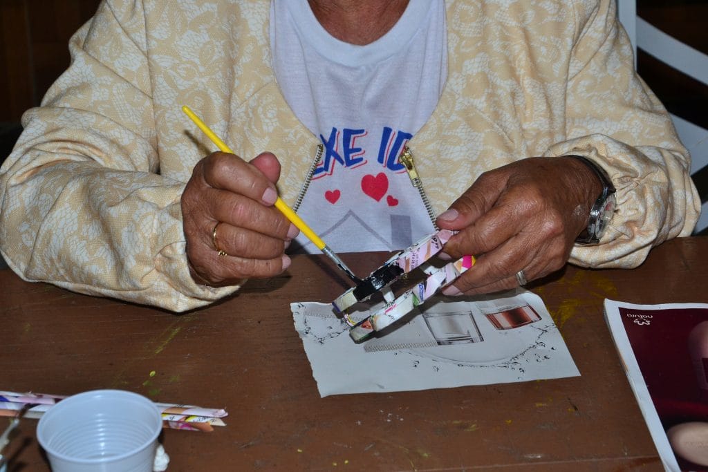 Eliane fala que além de produzir arte e ajudar o meio ambiente essa técnica abre o olhar para produzir produtos com materiais recicláveis e ainda relaxar. Marluce Cavalcante, que também participou da aula, confirma isso, “Desde que cheguei aqui não penso em outra coisa que não seja o artesanato e estou tranquila.”