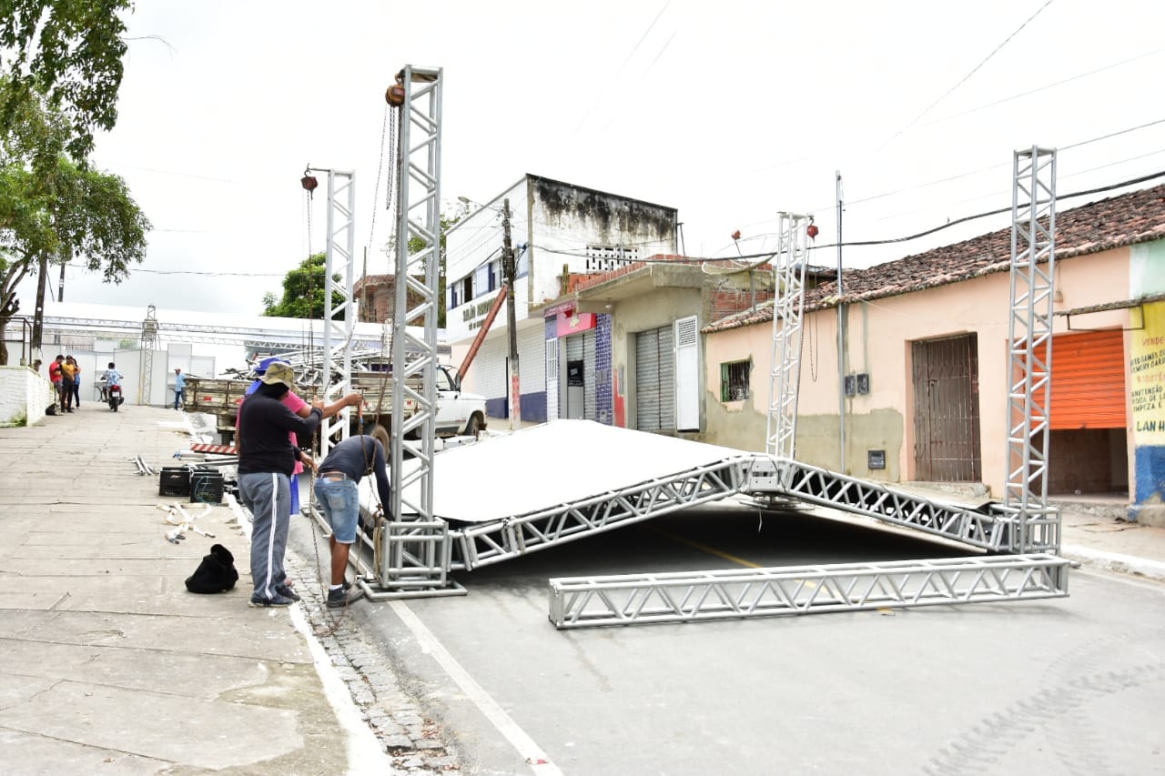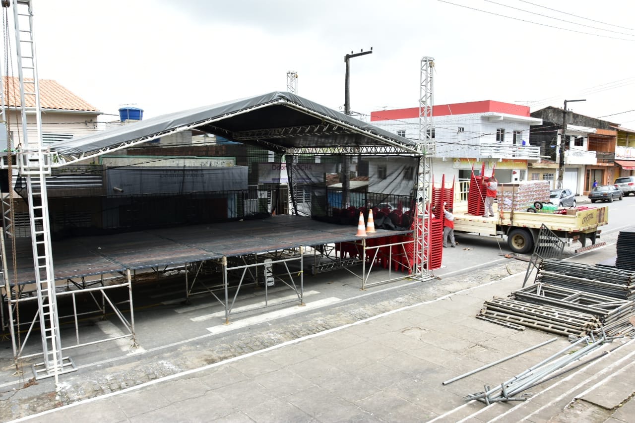 Para entregar no prazo e com toda estrutura prevista, a prefeitura tem intensificado os trabalhos de montagem de palco, iluminação e som para a Festa do Artesanato.