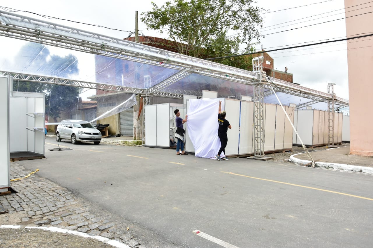 Na manhã desta terça (30), homens da prefeitura realizavam os últimos ajustes na infraestrutura da Festa do Artesanato.