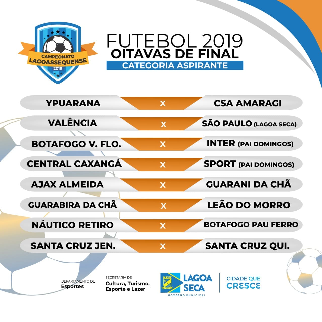 Iniciado no mês de agosto, a maior competição de futebol realizada pela Secretaria de Cultura, Turismo, Esporte e Lazer de Lagoa Seca/PB chega a sua reta final neste domingo (27). Após 7 rodadas disputadas por 32 equipes da zona rural e urbana, nas categorias aspirante e titular, o Campeonato Lagoassequense 2019 realiza seus jogos de volta das oitavas de final.
