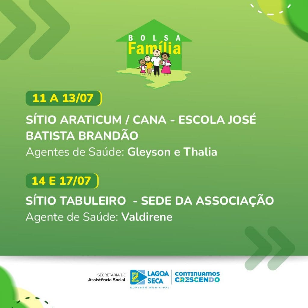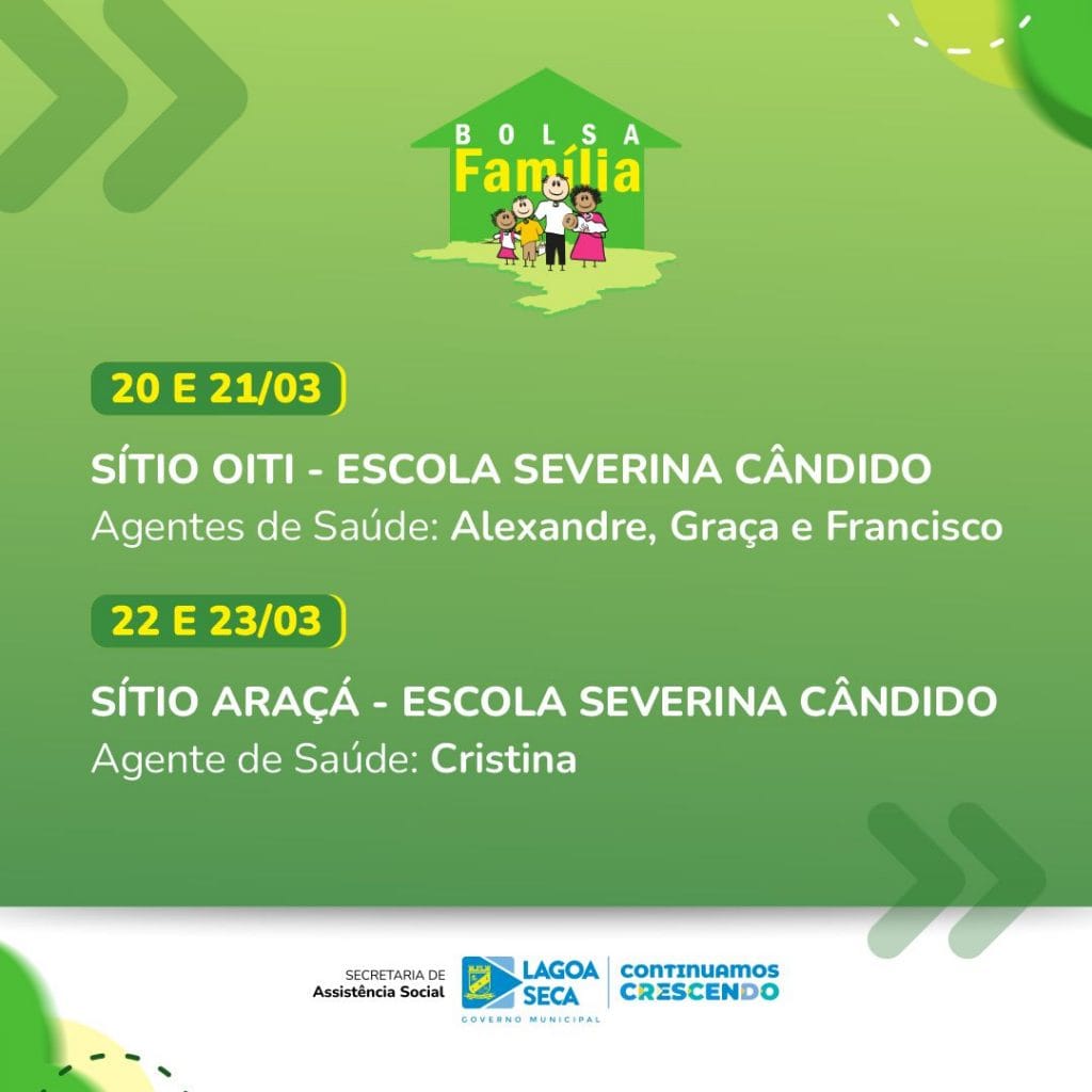 A Secretaria de Assistência Social de Lagoa Seca – PB irá iniciar o processo de atualização cadastral dos usuários dos programas sociais oferecidos pelo poder público no dia 20 de março. Os trabalhos serão coordenados pelo Departamento de Cadastro Único e Programa Bolsa Família, que elaborou um calendário de atendimento para evitar transtornos durante todo o processo. Na primeira semana do calendário, a atualização será realizada nas comunidades do Oiti, Araçá, Gravatá, Mineiro e Chã do Marinho.