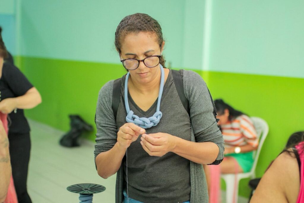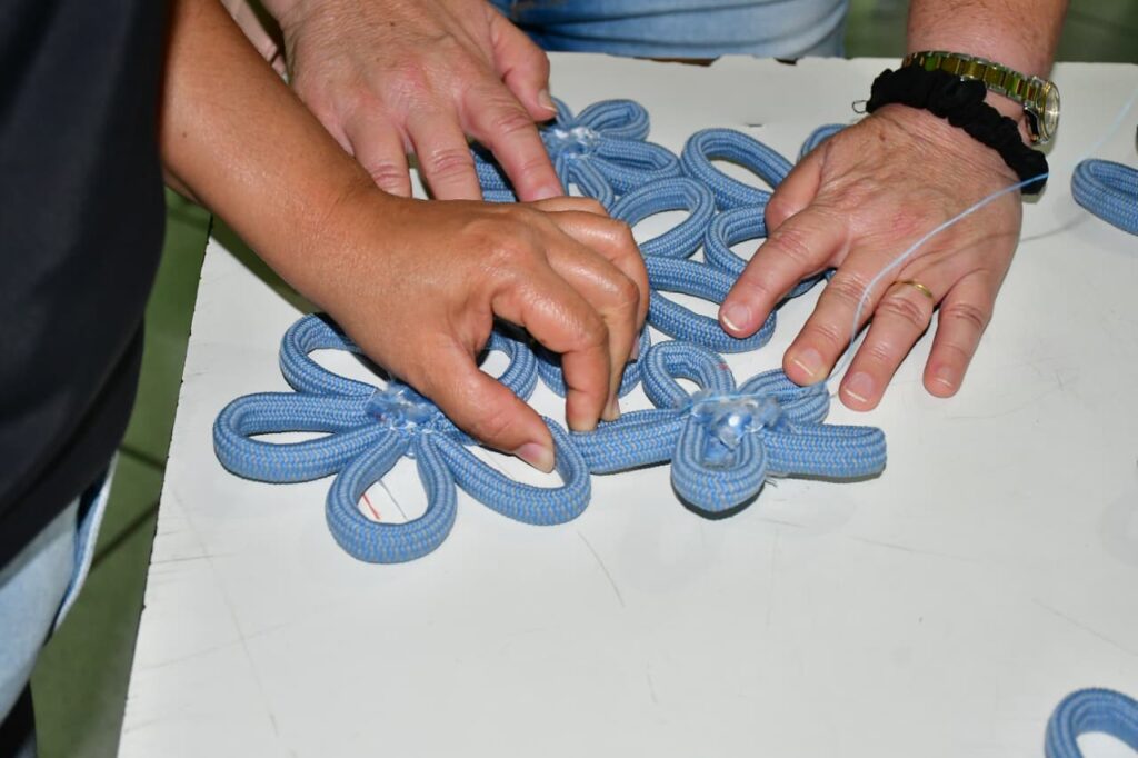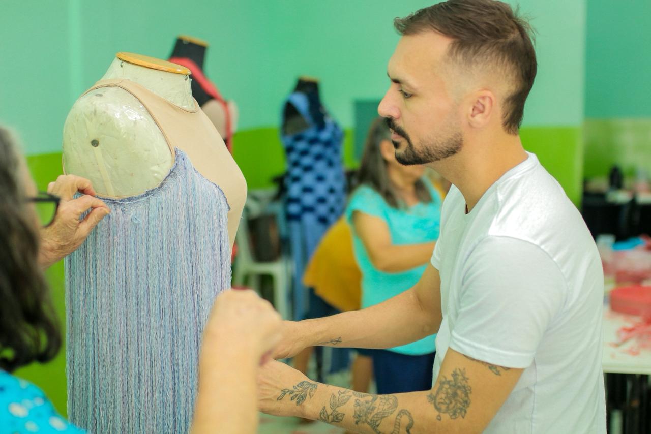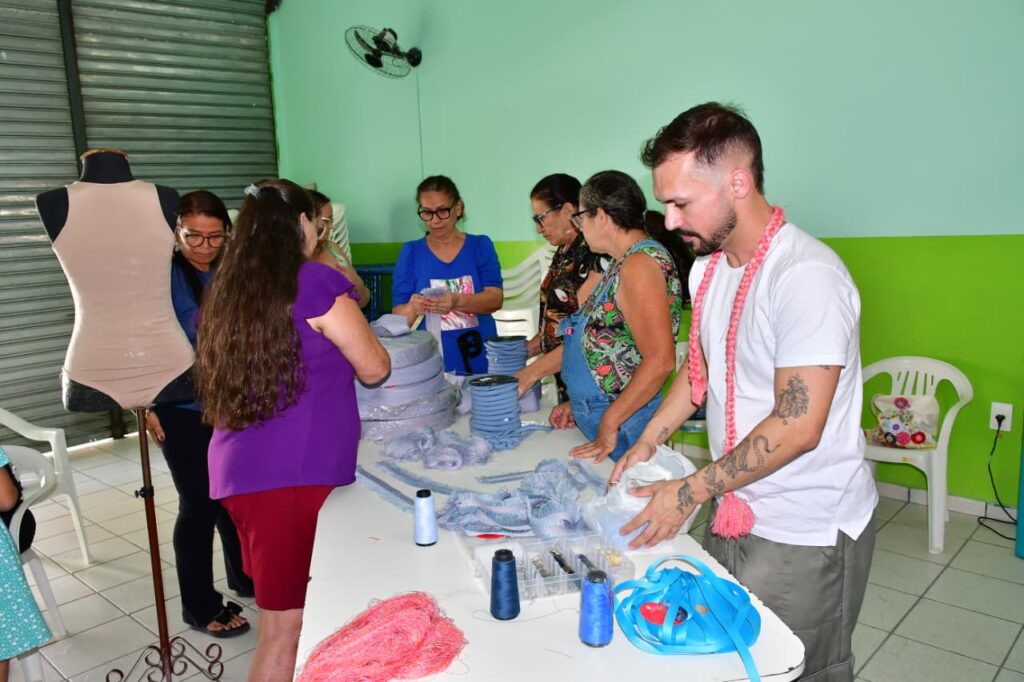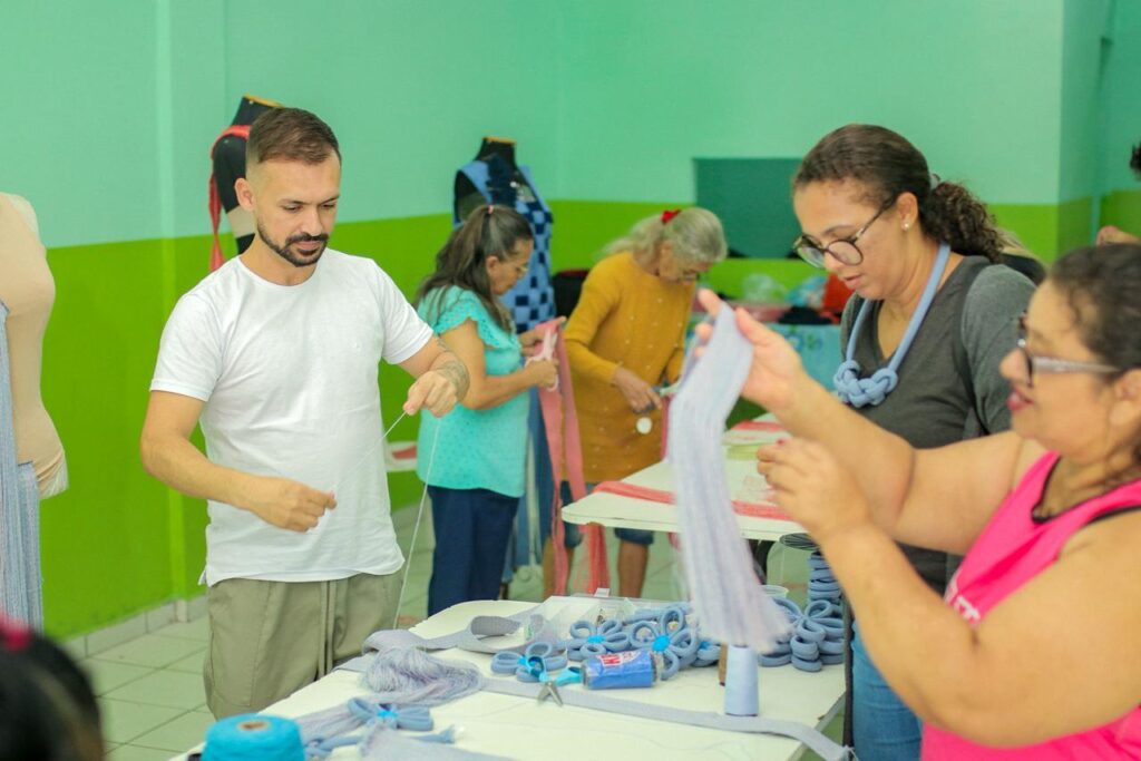 Nesta sexta-feira (3), nos turnos da manhã e da tarde, foi realizada mais uma etapa do curso de capacitação com o estilista Paulo Victor, que tem orientado os artesãos em técnicas de aprimoramento, design e apresentação de suas peças.