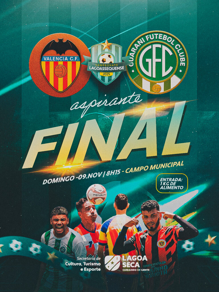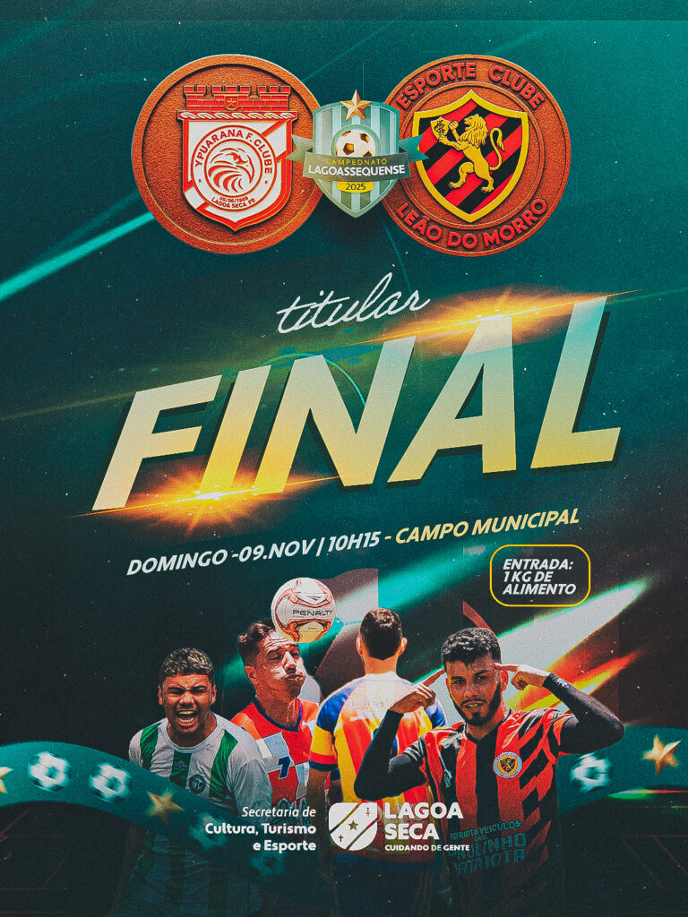As emoções do Campeonato Lagoassequense 2025 chegam ao fim neste domingo (9), com as grandes finais das categorias Aspirante e Titular, no Estádio “O Titão”. A Prefeitura de Lagoa Seca, por meio da Secretaria de Cultura, Turismo e Esporte, preparou uma programação especial e um esquema reforçado de segurança para garantir um domingo de esporte e tranquilidade.