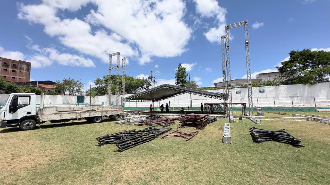 Neste primeiro momento, a equipe responsável pelo serviço está montando os tablados e, logo em seguida o palco, que receberá diversas atrações artísticas. Todo o trabalho está sendo realizado de forma planejada, garantindo segurança, acessibilidade e conforto para os visitantes.