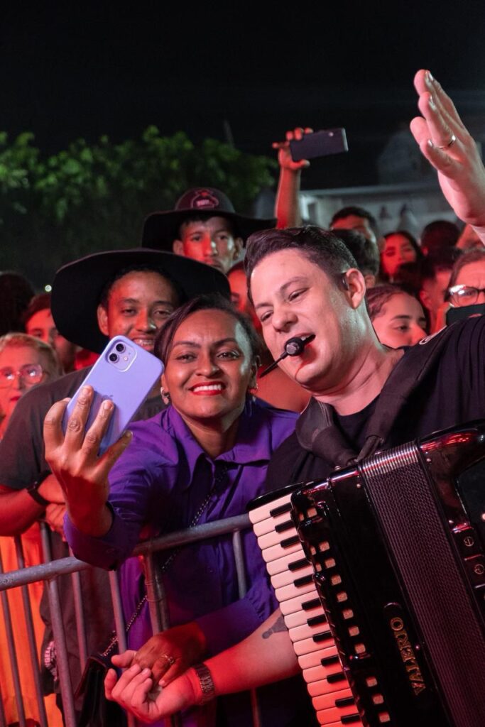 Fabiano Guimarães deu a largada e fez dueto com Jefferson Arretado. O músico apresentou um repertório versátil com canções do forró, brega e até pagode. Em um dos momentos mais marcantes, ele desceu do palco com sua sanfona e seguiu até o meio da multidão, onde brindou o público com cachaça e atenção especial.