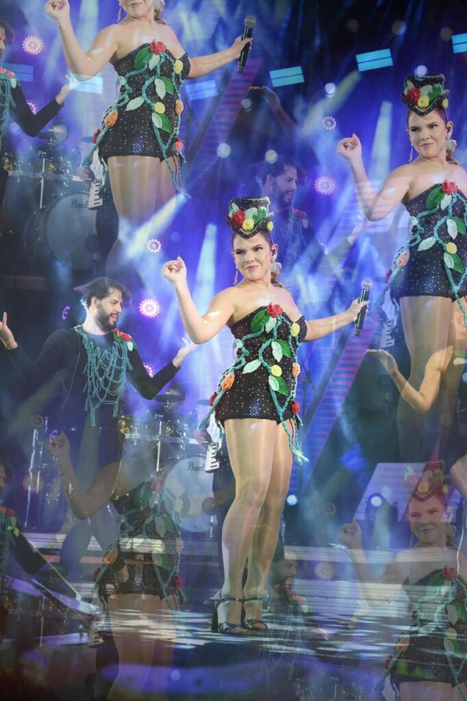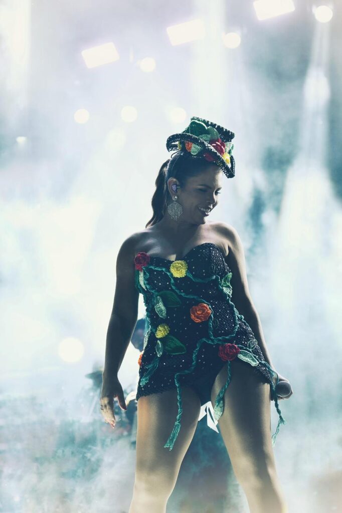 Encerrando a noite com força e elegância, Samya Maia foi a segunda cantora desta edição a vestir um look produzido por artesãs de Lagoa Seca, usando peças em crochê e macramê. Antes dela, Eliane – a Rainha do Forró – também já havia desfilado uma criação local.