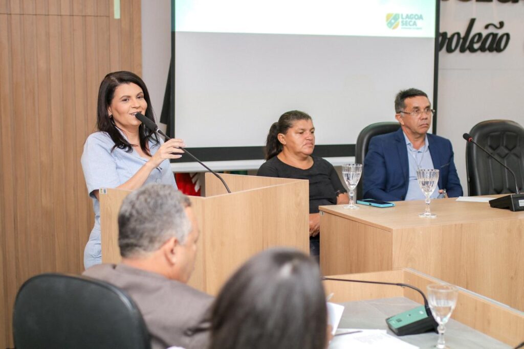 A prefeita Michelle Ribeiro participou, nesta terça-feira (3), da primeira sessão extraordinária da Câmara de Vereadores de Lagoa Seca, realizada na Casa de Napoleão Coutinho.
