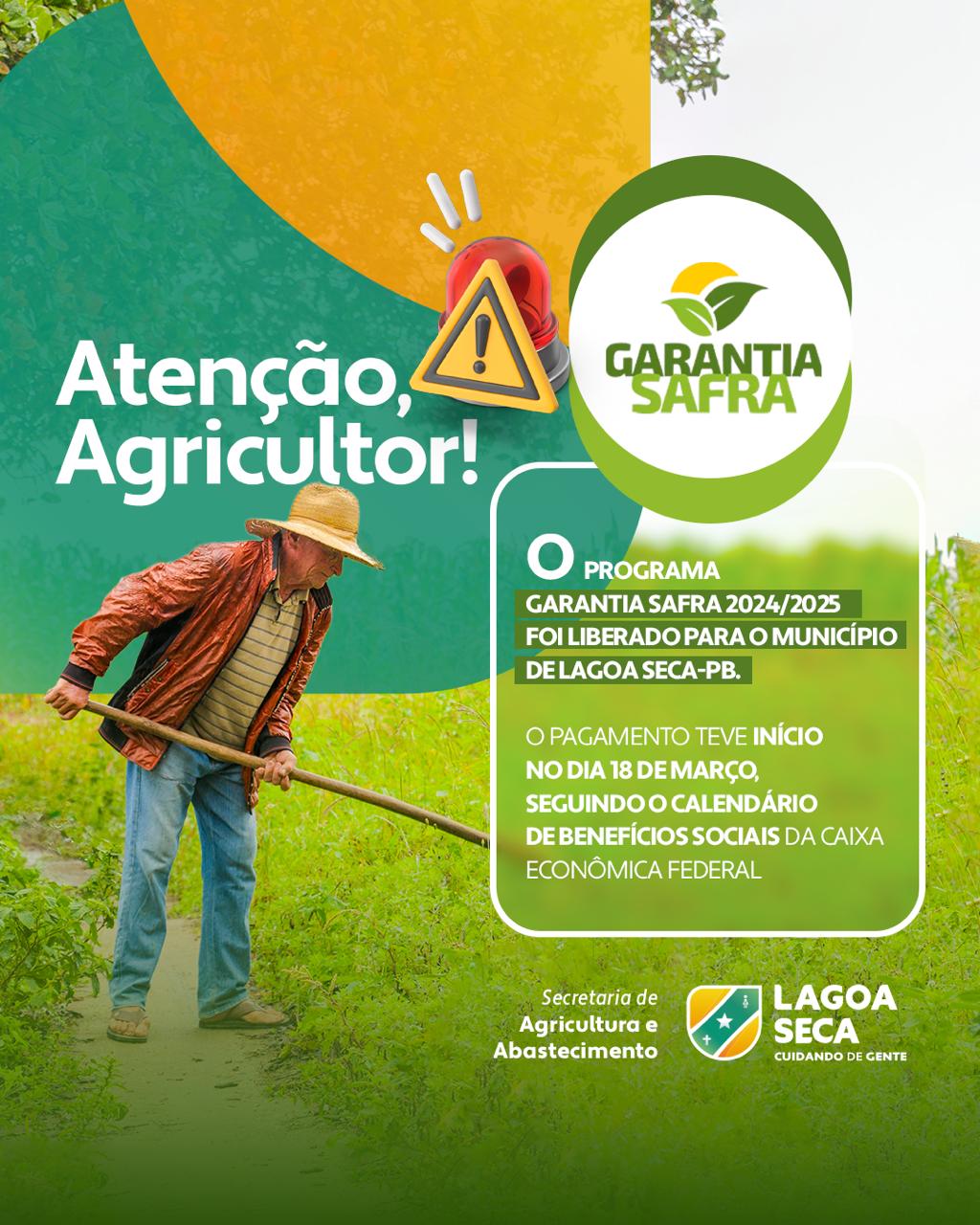 Os agricultores de Lagoa Seca já começaram a receber o benefício do programa Garantia Safra 2024/2025. Os pagamentos tiveram início no dia 18 de março e seguem o calendário de benefícios sociais da Caixa Econômica Federal.