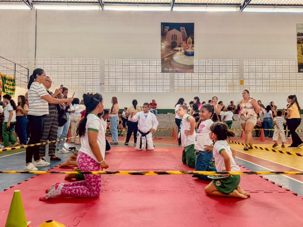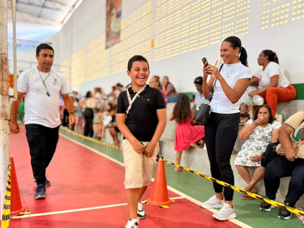 Durante o encerramento, a prefeita Michelle Ribeiro realizou a entrega de equipamentos esportivos destinados às aulas de Educação Física da rede municipal. Entre os materiais, estão bolas, colchonetes e itens para diferentes modalidades, que vão contribuir para aulas mais dinâmicas, inclusivas e participativas.