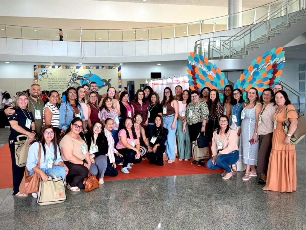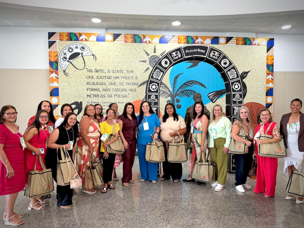 A participação contou com a presença de uma comitiva formada por representantes da gestão municipal, profissionais da educação e artesãs do município.