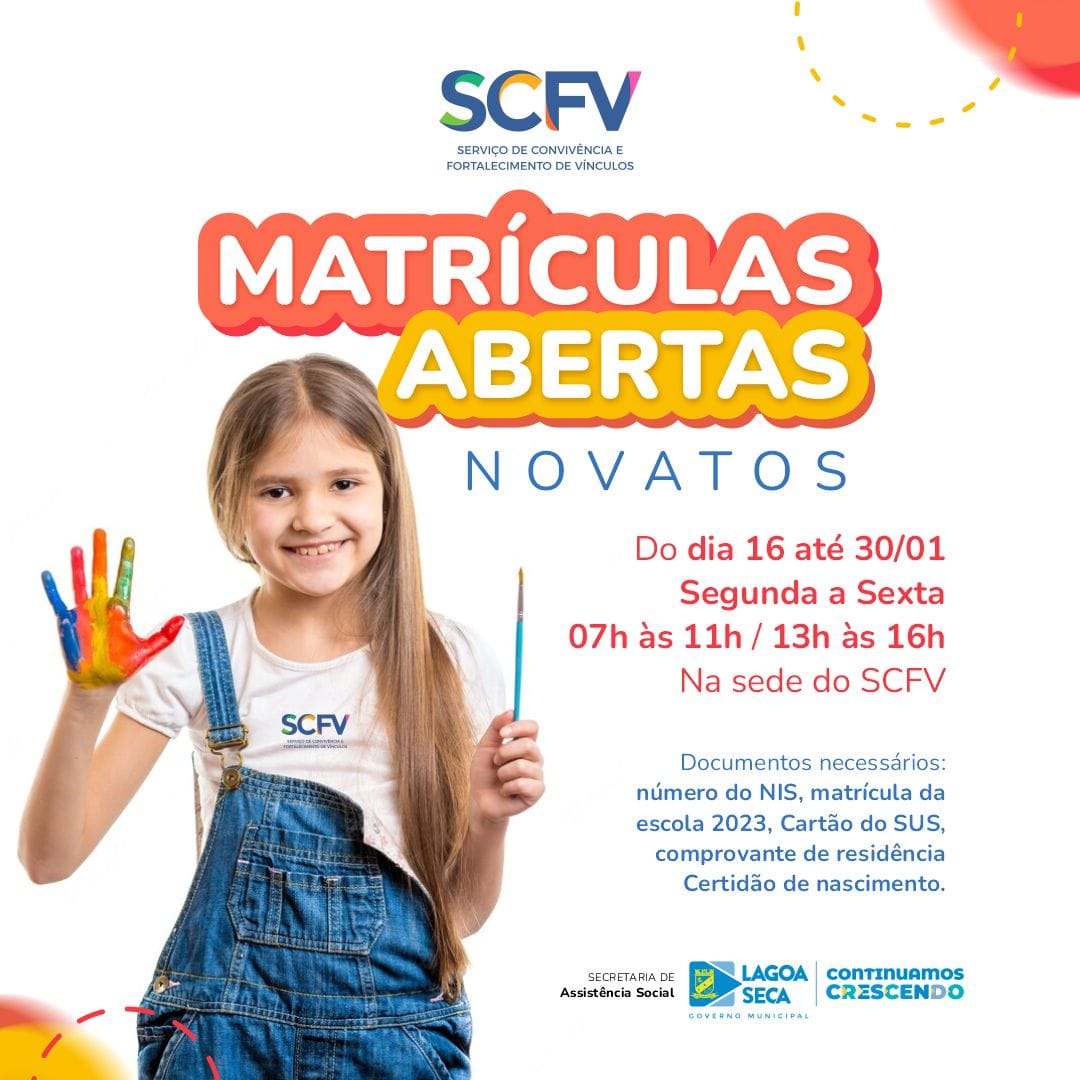 MATRÍCULAS ABERTAS: Serviço de Convivência e Fortalecimento de Vínculos abre vagas para novatos