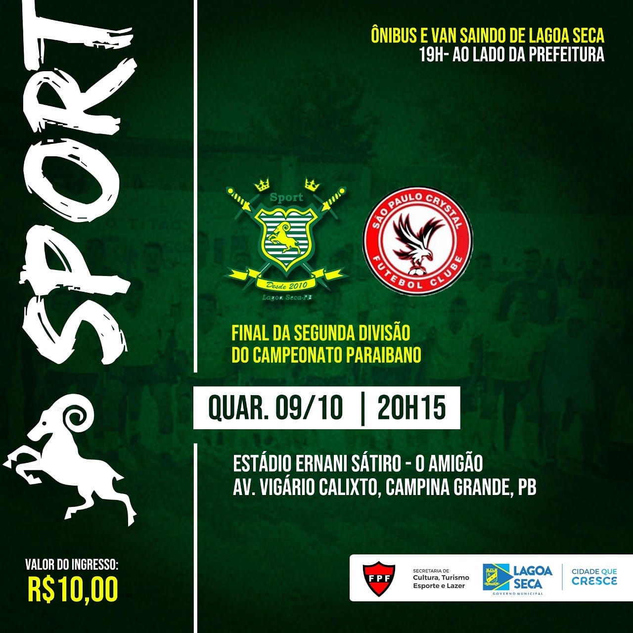 Após conquistar o acesso para a 1° divisão do Campeonato Paraibano com o apoio da Prefeitura de Lagoa Seca/PB, o Sport Club Lagoa Seca enfrenta nesta quarta (9), o São