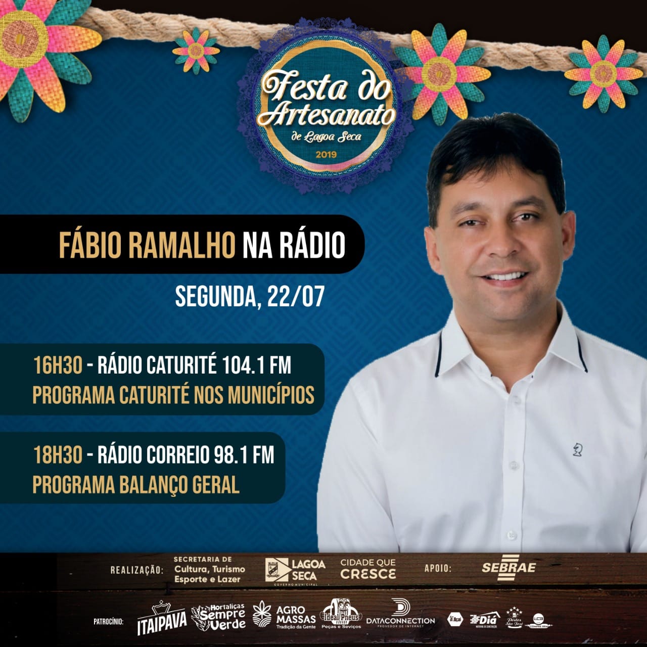A segunda-feira (22) será o dia de prestação de contas e novidades anunciadas pelo prefeito Fábio Ramalho. O gestor estará na Rádio Caturité (104.1FM), às 16h30, e na Rádio Correio